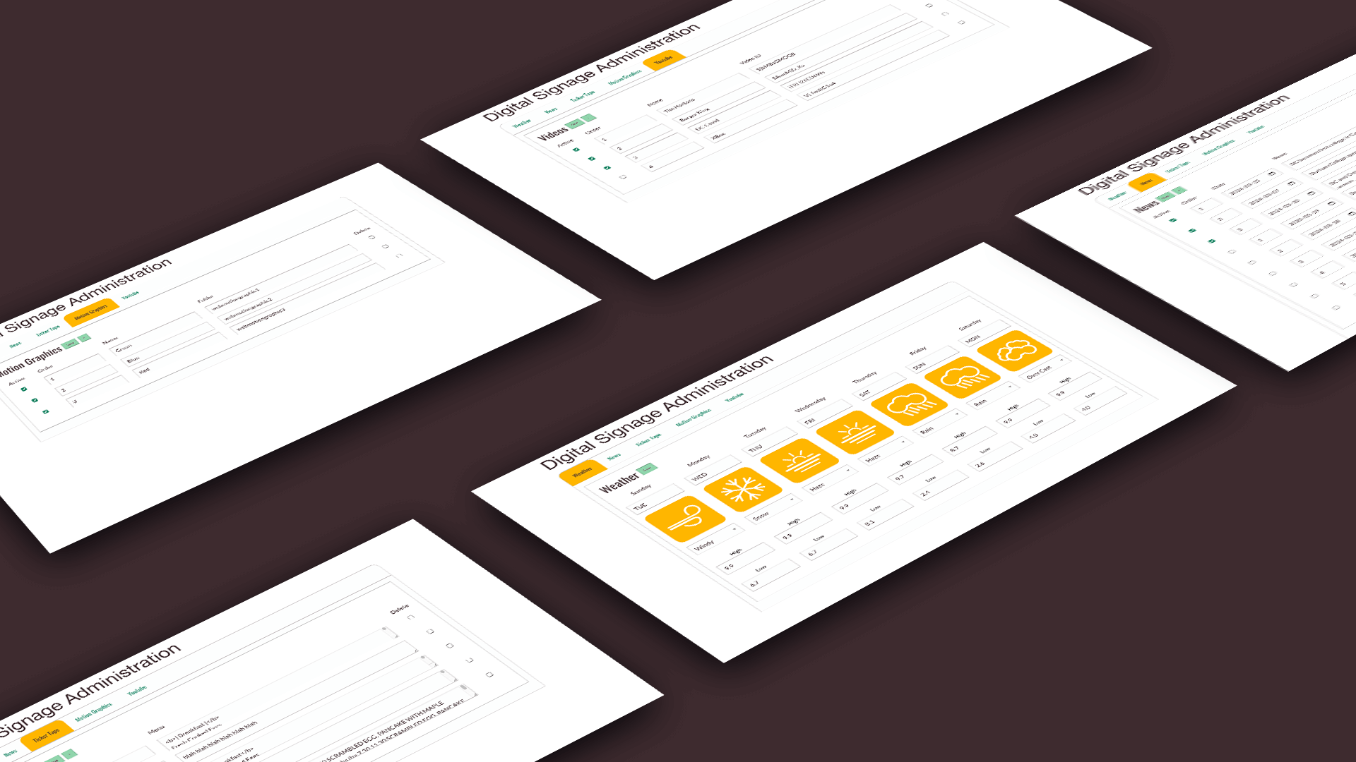 The back-end also involved the development of the admin page that will help the admins easily update the data for the different panes, be it weather, GSAP animation advertisements, youtube motion graphics video advertisements, news or menu on the ticker tape.