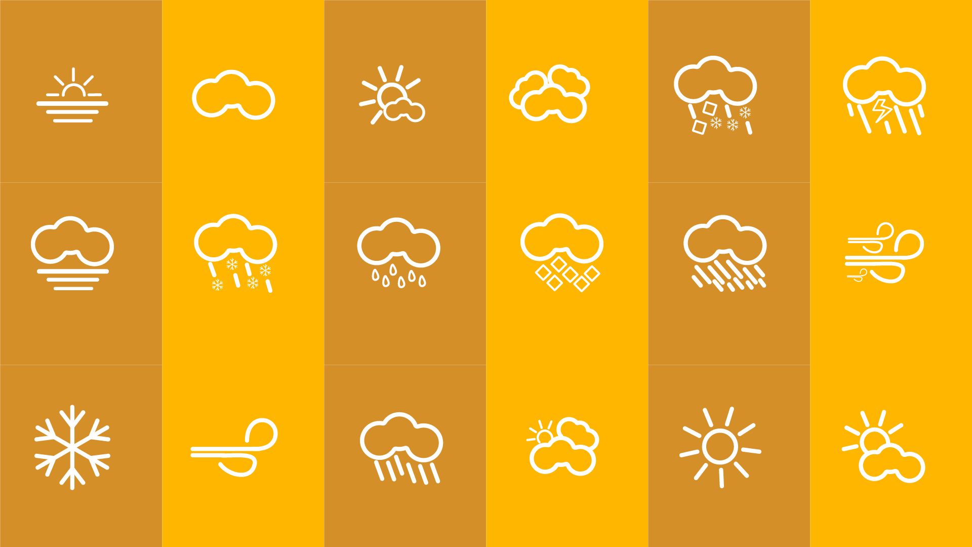 Next step involved creating the icons for the weather conditions. I kept it simple and made it easy to understand, eliminating the need for a word descriptor.